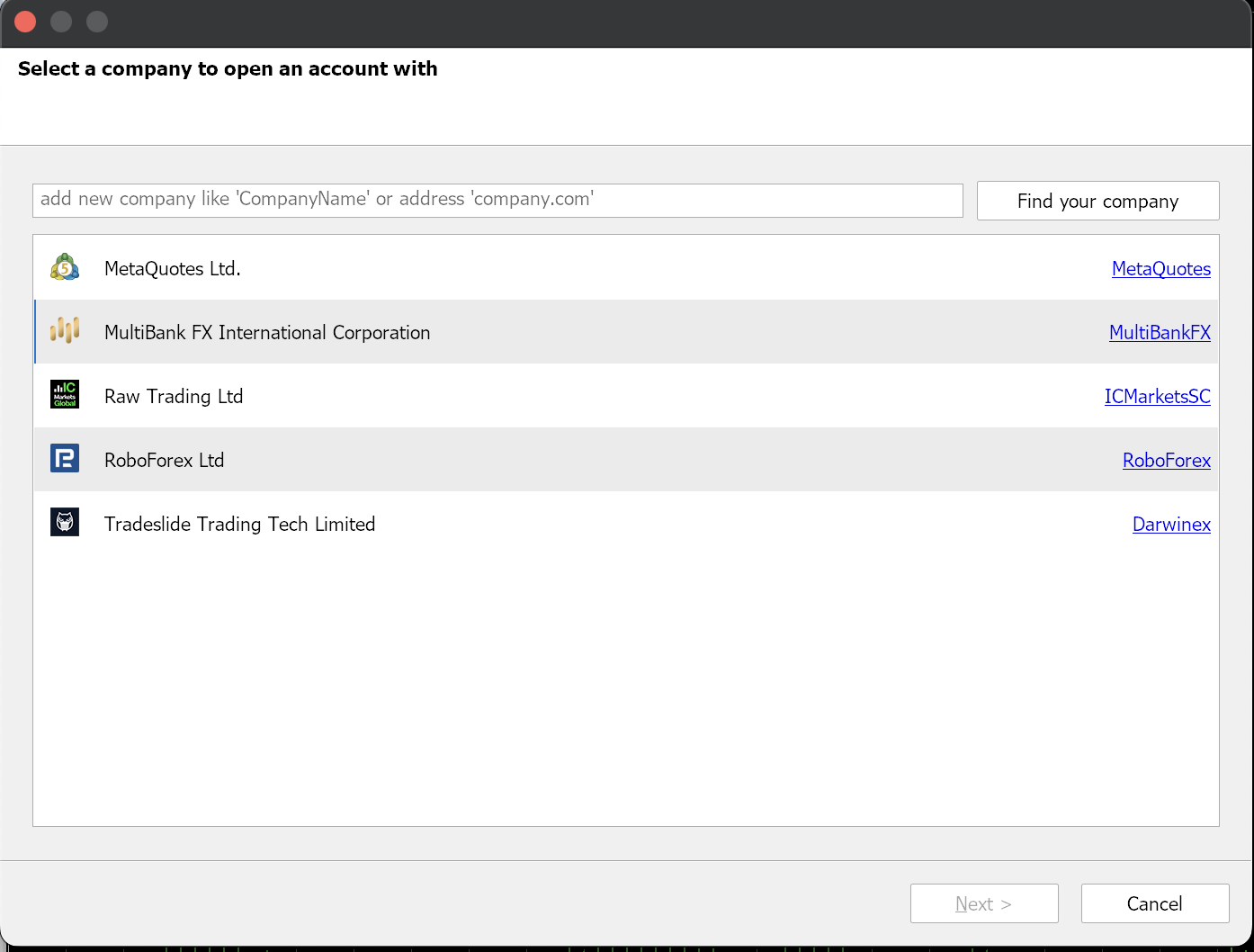 2. If your broker does not provide a Mac OS version, you can download MetaTrader (MT4/MT5) from another broker’s website and simply log in with your own broker account.