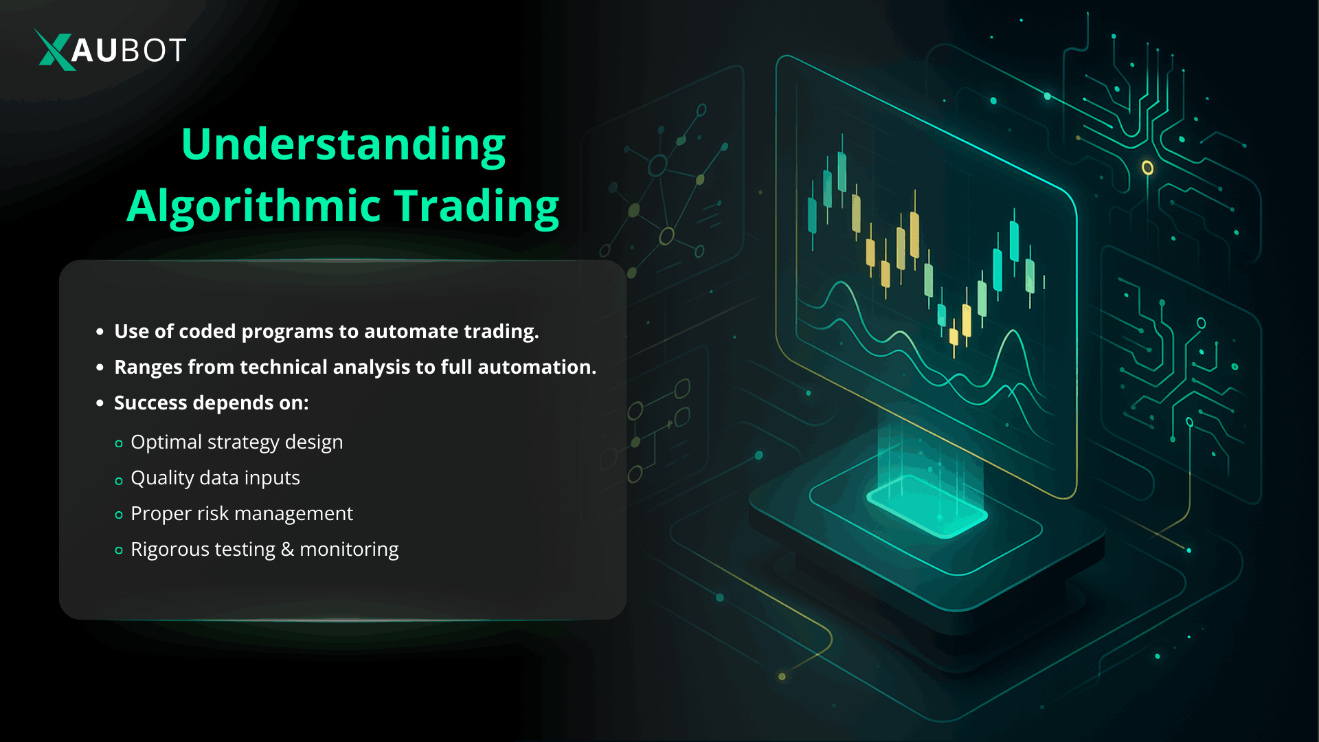 Algorithmic trading is the use of any algorithm or pre-determined, coded program to automate any and all processes in trading.Â
